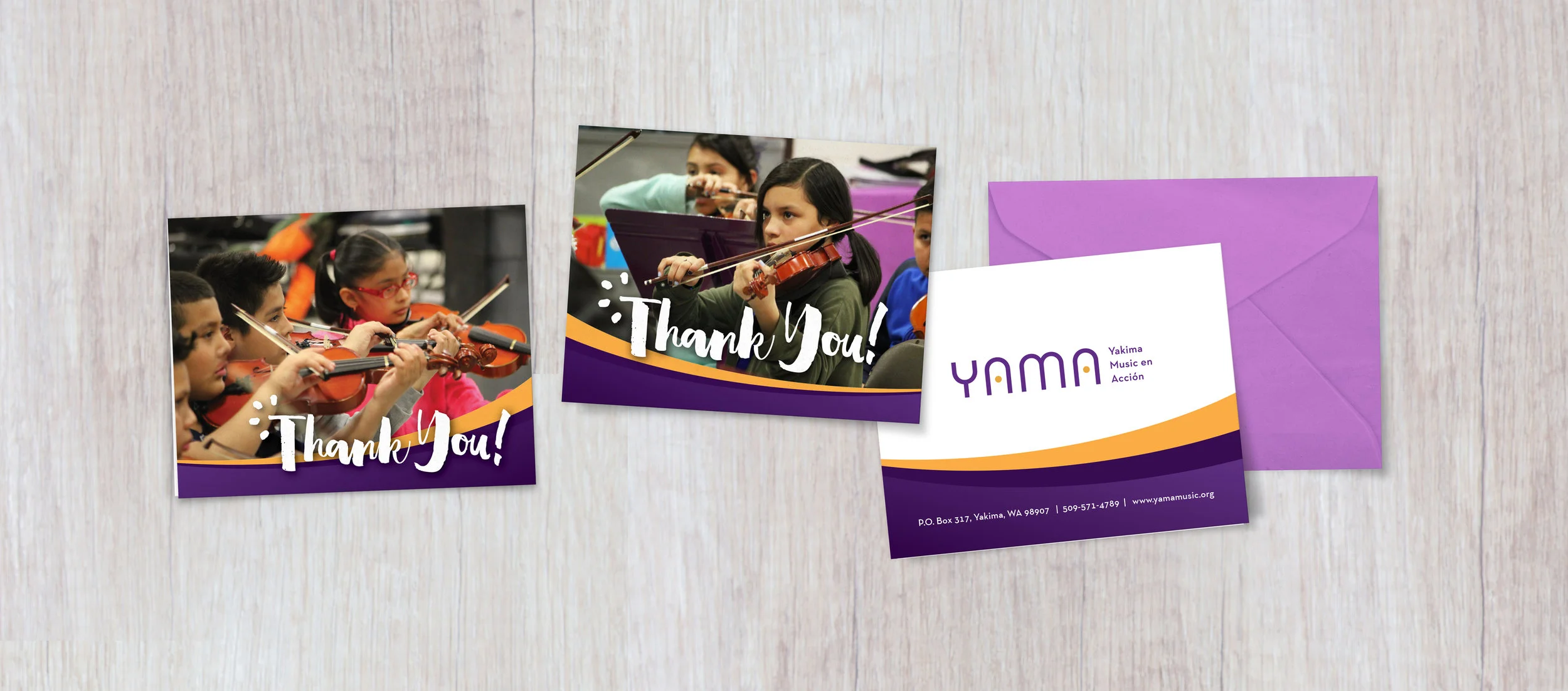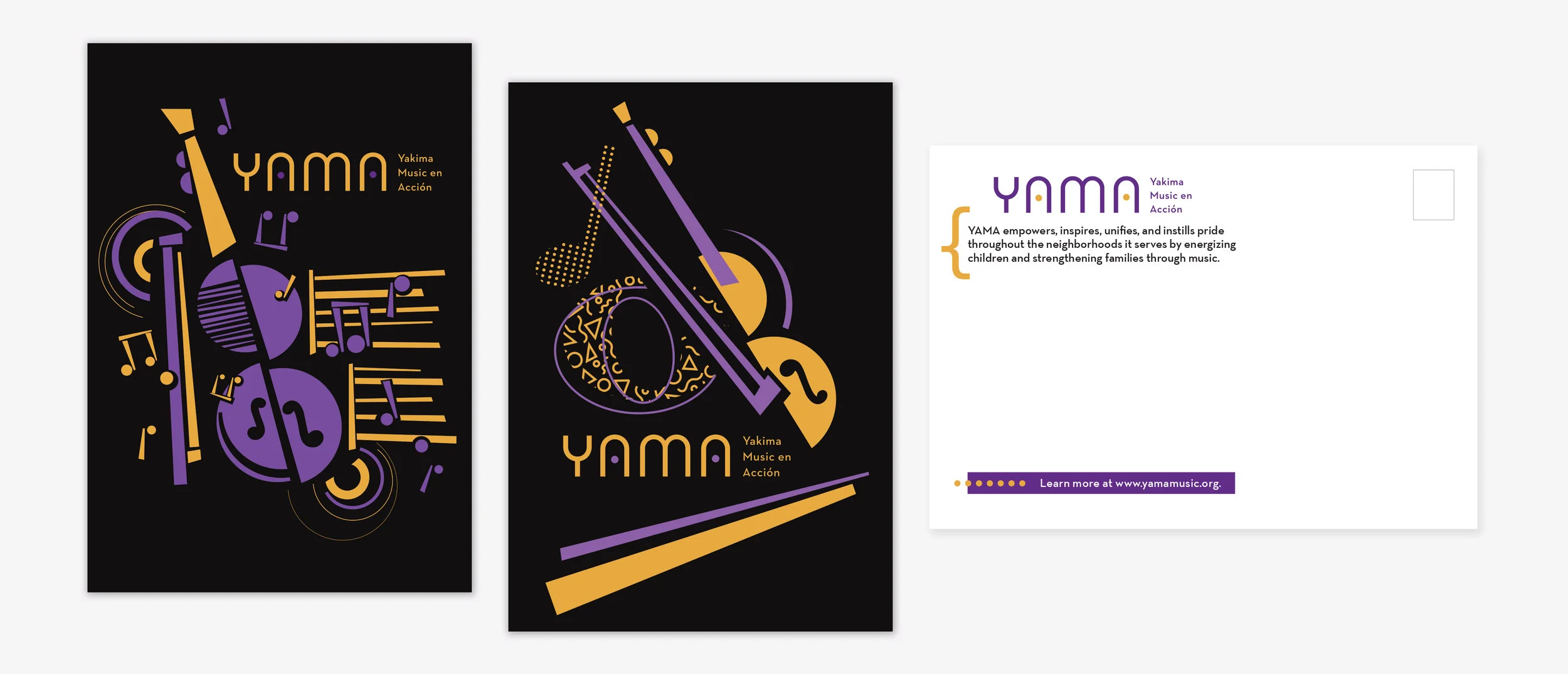 For YAMA, I designed multiple items including a letterhead, thank you cards, signage for events, and promotional materials like a design for a drawstring bag, postcards and images for online crowd sourcing and fundraising campaigns. I always try to capture the energy of the kids, the music and the community they have fostered.